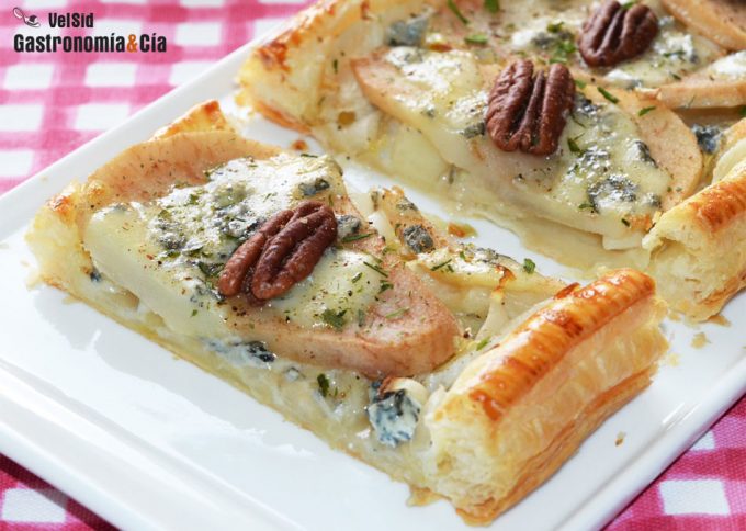 Hojaldre de endibias, pera y queso azul curado ![]()