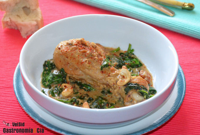 Hay que decir que si vosotros preferís cocinar con espinacas congeladas, algunas de estas recetas de pollo con esta verdura también las podréis hacer, por ejemplo, los muslos de pollo a la crema o el pollo con crema de espinacas y limón. Y poco más que añadir, si tenéis alguna duda nos lo hacéis saber, de todos modos, en cuanto veáis las recetas comprobaréis que todas son sencillas, rápidas de hacer y que fácilmente gustarán a toda la familia. Por cierto, os recordamos que para ver las recetas tenéis que pulsar en el nombre del plato que está sobre la foto, aunque algunos penséis que nos repetimos, tenéis que saber que no todo lector que viene a ver las propuestas culinarias lo sabe, y hay que ponerlo fácil.
