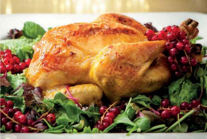 ˚ Pollo gallego de corral relleno con salsa de Cassis, mostaza e higos 45€ (kilo)