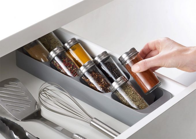 Hoy vamos a hablaros de un utensilio de cocina que nos gusta pero que no nos sirve (o quizá sí), y a continuación os explicaremos por qué, pero estamos seguros de que a algunos de vosotros también os puede gustar y, además, puede ser lo que estabais buscando para tener vuestras especias ordenadas y colocadas de forma que sea fácil verlas y cogerlas para utilizarlas. El utensilio en cuestión es el organizador de tarros de especias DrawerStore de Joseph Joseph.