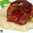 Sirve el ossobuco de ternera con patatas violetas y salsea al gusto. Puedes poner la salsa en una salsera y que cada comensal se sirva al gusto. ¡Buen provecho!