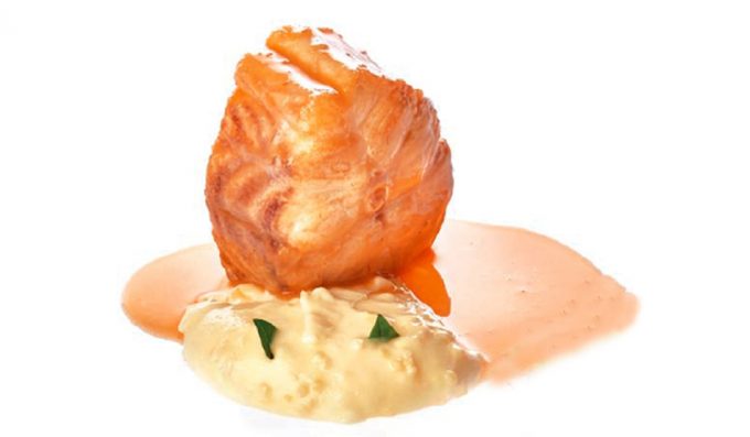 La cuestión es hacer un corte vertical en un pescado ‘redondo’, dando como resultado una tajada circular con la espina en el centro, como sucede con la carne y con su hueso. Es un corte ideal para que las fibras musculares, expuestas transversalmente, absorban los sabores del cocinado. El cazón se acompaña de una salsa gremolata (muy distinta a la que nosotros conocemos y que podéis ver aquí), y un puré de patata o parmentier, sin duda, es un buen plato para una comida especial, así que tomad nota de la receta de Ossobuco marino a la gremolata de Ángel León, os va a encantar.