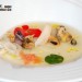 Podemos ver en la imagen inferior la atractiva presentación que potencia con flores comestibles como la capuchina o la begonia, perlas de fruta de la pasión, amaranto y unas gotas de aceite de oliva ecológico.