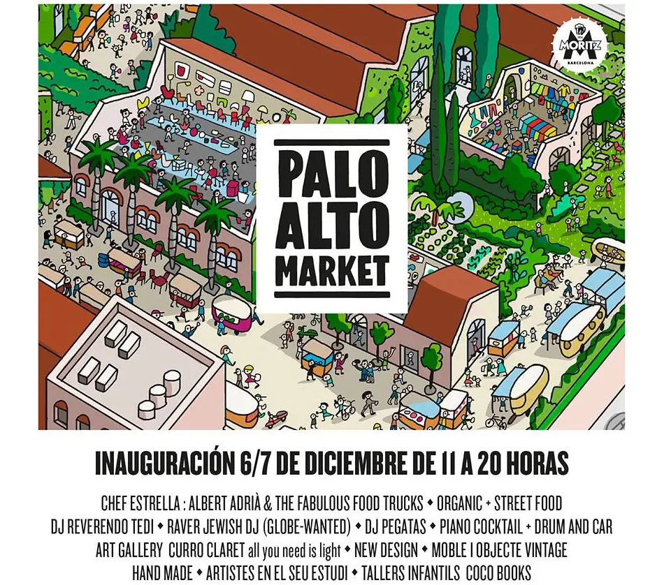 Como podéis ver en el cartel de esta nueva propuesta multicultural, para el estreno cuentan con un chef estrella, Albert Adrià. Si queréis conocer más expositores y parte de la oferta gastronómica o de comida callejera de la que se podrá disfrutar en este mercado, podéis acceder a la página de Facebook de Palo Alto Market Barcelona.