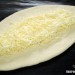 Estira la masa de pan dándole forma ovalada (hazlo igual con los dos), reparte el queso en el centro, dejando un par de dedos a su alrededor, esta masa sobrante debe doblarse y cubrir parte del queso, como puedes ver en la foto, dale un giro a los extremos de la masa para cerrarla.