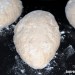 Llegado el momento, vuelca la masa en la superficie de trabajo enharinada, haz cuatro porciones para los cuatro panecillos y dales forma, primero haciendo una bola y añadiendo un poco de harina de trigo para poder formarla, después dale forma de barrita tensando la superficie y recogiendo la masa hacia la base.