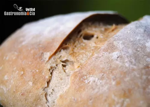 Cuando introduzcas el pan en el horno, previamente pulveriza con agua o pon una bandeja en la parte baja con agua fría para crear vapor, baja la temperatura a 200º C y hornea durante 45 minutos o hasta que el pan esté dorado y la corteza crujiente. A mitad del horneado vuelve a pulverizar agua o controlar que todavía tiene en la bandeja.