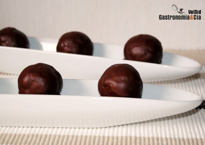 Sirve los panellets de coco y chocolate en la bandeja con el resto de dulces de estas fechas, recuerda a qué temperatura se conserva el chocolate para que la cobertura de estos panellets se mantenga brillante.