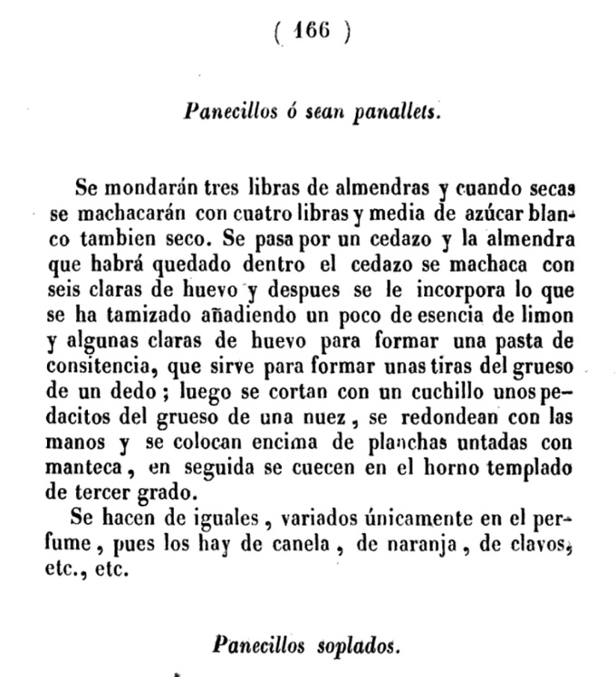 Y es que, si recurrimos a referencias escritas antiguas sobre los panellets, nos encontramos con lo que podéis ver sobre estas líneas, la receta de: Panecillos ó sean panallets. Dice así: