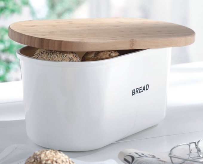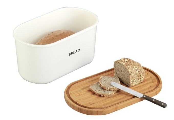 Esta panera de la firma Zeller tiene un diseño actual y buena capacidad para guardar distintos tipos de pan. Sus medidas son de 39 cm. de largo, 18’5 cm. de alto y 23 cm. de ancho. No sólo permite guardar el pan del día, también es un buen recipiente para guardar la repostería casera.