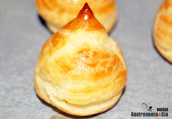 Ahora bien, volviendo al tema de conseguir una pasta choux como recién hecha, que recupere la superficie delicadamente crujiente, ya os hemos comentado que es muy sencillo, sólo que será necesario volver a utilizar el horno. Lo recomendable es que la pasta esté guardada en el frigorífico hasta el momento de introducirla de nuevo en el horno para recuperar la textura exterior. La temperatura de éste deberá ser media, ya están inflados, a unos 180º C, y el tiempo dependerá de la cantidad de choux que haya y del horno, como siempre, pueden ser cinco minutos, pero lo mejor es comprobarlo, tan simple como tocarlos.