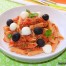 Sirve la pasta con las berenjenas en los platos y báñala con el salmorejo, finalmente añade unas escamas o finas lonchas troceadas de queso curado. ¡Buen provecho!