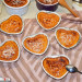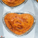 Tritura hasta obtener una masa semilíquida homogénea, a continuación viértela en los moldes de desees utilizar para la presentación, pueden ser ramequines, flaneras, moldes de aluminio (hemos aprovechado para gastar los que teníamos con forma de corazón)… La cantidad por servicio puede rondar los 110-150 gramos.