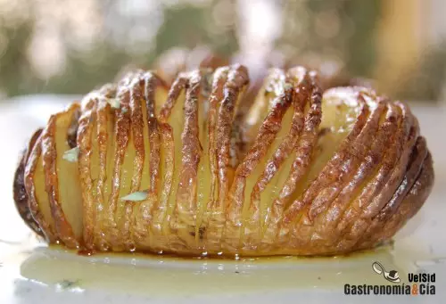 Esta receta de Patatas Hasselback es una guarnición, además de bonitas en su presentación, resultan deliciosas. Las especias se pueden variar al gusto, como ya os comentamos en el post sobre las Patatas Hasselback, para nosotros están ideales especialmente con clavo y ajo, ingredientes que utilizamos con cualquier corte que les demos a las patatas para hornear.