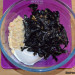 Pon ahora un poco de aceite de oliva virgen extra en la sartén y añade los ajos picados, muévelos para que dejen su sabor y dejen de estar crudos, antes de que se doren añade las trompetas negras. Saltéalas, deja que suelten su agua (no suelen soltar mucha) y que se consuma, antes añade un poco de sal. Retira las setas del fuego.