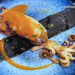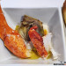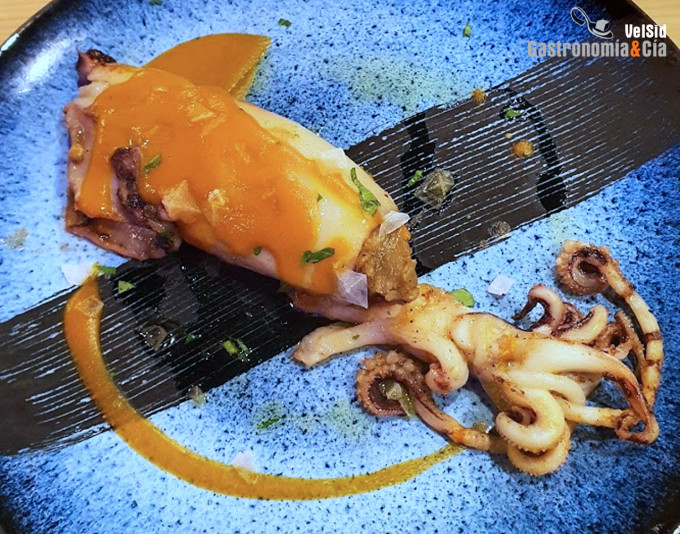Tras estos tres primeros bocados, el menú contempla cuatro principales, empezando por un majestuoso Calamar de lonja relleno de marisco y alcachofas, y su reducción, un calamar super tierno y sabroso, con un relleno jugoso y fiel a los sabores de la huerta y del mar de Benicarló.