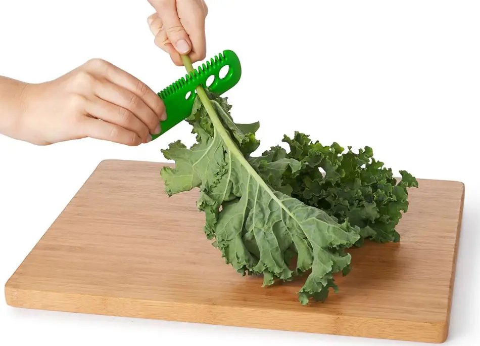 El deshojador de hierbas aromáticas y kale de Oxo está fabricado en material plástico resistente (se puede introducir en el lavavajillas para lavarlo), sólo está disponible en verde y por su diseño, permite deshojar las hierbas como el perejil, el orégano, el romero, el tomillo, etc., de forma cómoda porque se puede arrastrar sobre la mesa de trabajo, es el detalle que nos parece más destacable.