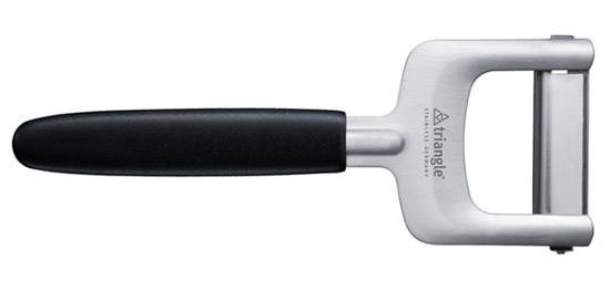 El pelador juliana de Triangle, diseñado por Ralph Krämer, tiene tres cuchillas intercambiables, fabricadas en acero inoxidable de primera calidad, por lo que ofrece tres tipos de corte, además de poder obtener recambios que harán más duradero este utensilio de cocina. La primera cuchilla es de corte liso, esta permite cortar finas láminas de la verdura en cuestión.