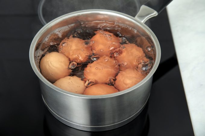 Existen otros factores que pueden influir más, la ya mencionada frescura del huevo y el choque térmico. Seguramente también habréis escuchado que para pelar los huevos cocidos conviene enfriarlos inmediatamente. Incluso Harold McGee considera la opción de cocer los huevos un poco de más y dejarlos reposar en el frigorífico, pero esta opción no nos convence en absoluto. Cocer los huevos demasiado hace que la yema quede seca y con ese aro verde tan desagradable a la vista.