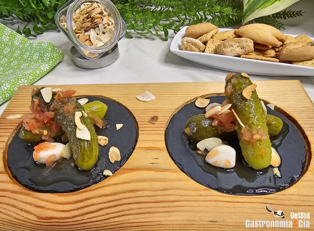 Los pepinillos deliciosa y humildemente marinados con aceite de oliva virgen extra y tomate están listos para disfrutar como aperitivo o como parte de otro plato, y tenemos propuestas exquisitas, así que, sigue en Gastronomía y Cía. Por cierto, esto no es una conserva al uso, así que conviene consumir los pepinillos marinados en una semana aproximadamente. ¡Buena cocina y buen provecho!