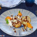 Pica las avellanas tostadas a cuchillo groseramente, que queden trozos grandes. Prepara unas hojas de hierbabuena para decorar, y unas láminas de persimon u otra fruta semi deshidratada.