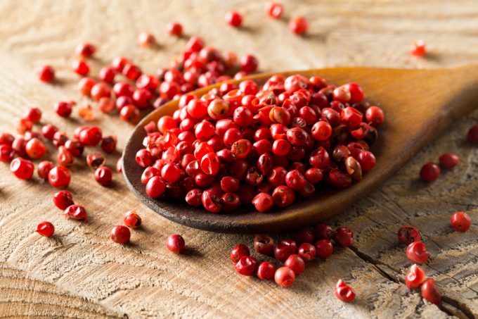 La conocida pimienta rosa en realidad no es una variedad de pimienta (Piper), son los granos del denominado pimentero brasileño o turbinto (Schinus terbinthifolius), un pequeño arbusto de la familia de los anacardinaceos de zonas tropicales y subtropicales que fue llevado a Estados Unidos como árbol ornamental que en algunas regiones con alta pluviosidad se ha convertido en una planta invasora o maleza.