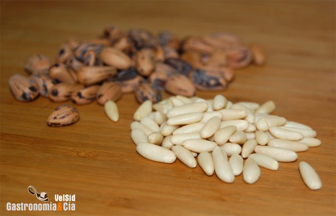 Nosotros nos negamos a consumir el piñón chino, no proporciona nada, es preferible sustituir este fruto seco por cualquier otro en caso de no disponer de los piñones nacionales. Nosotros tenemos la fortuna de recoger de vez en cuando nuestros propios piñones a los pies de la montaña de Montserrat, estos aún nos gustan más que los que compramos.