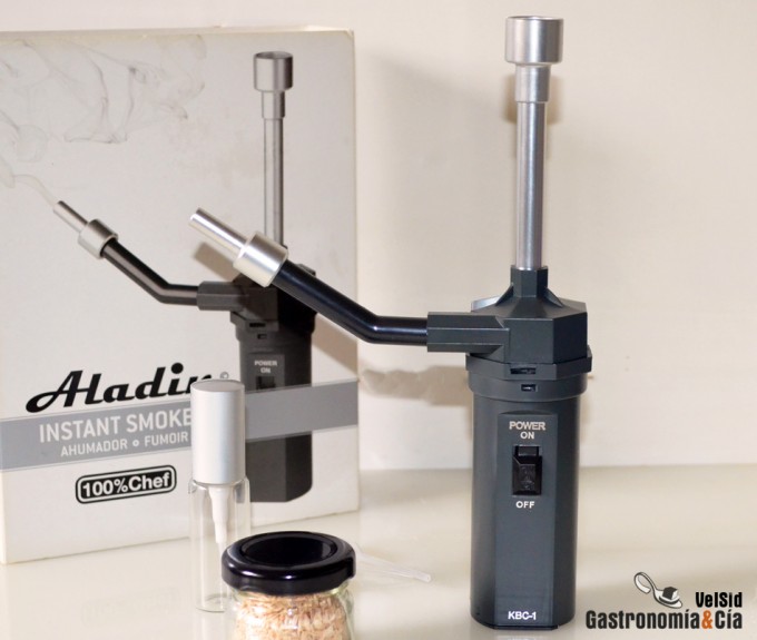 El ahumador instantáneo Aladín se comercializa con un utensilio semi profesional, se presenta en una caja con algunos accesorios, como un botecito de serrín, un spray vaporizador, un par de pipetas y un kit de rejillas. De forma independiente se pueden adquirir otros complementos para la pipa de humo, como la mencionada campana. Además, se pueden utilizar distintos tipos de serrín para proporcionar al plato un ahumado con distintos matices, así como aceites esenciales que otorgarán otros aromas.