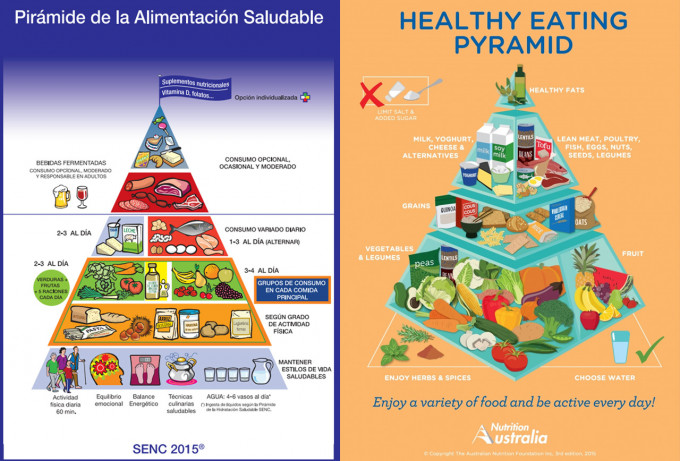 Piensa como consumidor en lugar de como dietista-nutricionista, y no sólo como consumidor interesado en mejorar la dieta, también como el consumidor que no aprecia la importancia de llevar una dieta saludable y sostenible, si es que hay verdadero interés en transmitir conocimientos sobre el tema. Quizá el problema es que das por hecho que el grueso de la población sabe algo sobre nutrición, lamentablemente, sigue sin haber asignaturas en los colegios. Si se quiere dar un mensaje a través de una imagen, ésta debe ofrecer la misma información que el artículo que lo acompaña (así podría ser, incluso, una pirámide internacional).