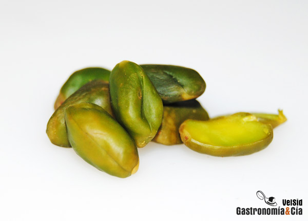 Con la intención de enriquecer un plato con pistachos de una forma más delicada, de un tiempo a esta parte ha aumentado la incorporación en muchas recetas de este fruto en crudo, se presenta sin cáscara ni piel, mostrando su color natural, de ahí que se conozcan como pistachos verdes o pistachos repelados.