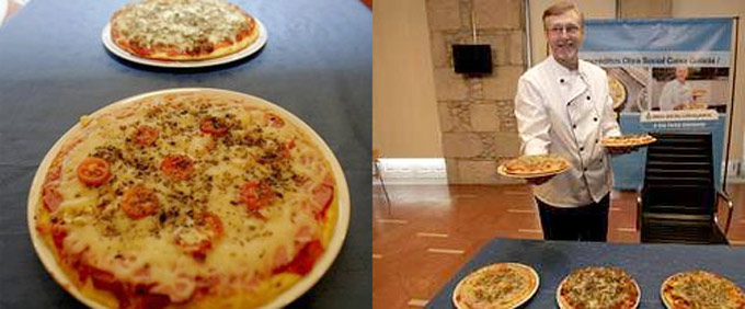 Al parecer, ayer presentó la pizza con base de tortilla en la sede de la Fundación Caixa Galicia, quienes le concedieron uno de sus famosos microcréditos para poder montar un negocio, Cocina Imperial. El señor Castro sirve a domicilio (a particulares y a establecimientos hosteleros) sus especialidades culinarias, paellas, tapas y entre otros platos, ahora también las Torpizzas.