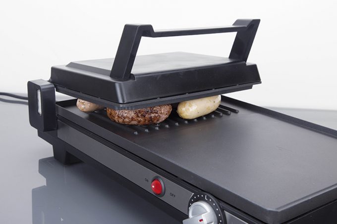 Así que lo normal es ocupar varios fogones para cocinar los distintos alimentos. Pero hace unas semanas, estuvimos viendo lo que actualmente había en el mercado en cuanto a planchas eléctricas para renovar la pequeña y vieja que nosotros teníamos, y nos encontramos con el grill de asar doble que podéis ver en la foto, lo que más nos atraía era disponer de una placa superior para cerrar el grill y poder hacer sándwiches con el pan crujiente y el relleno caliente, pechuga de pollo entera en pocos minutos y bien tostada…