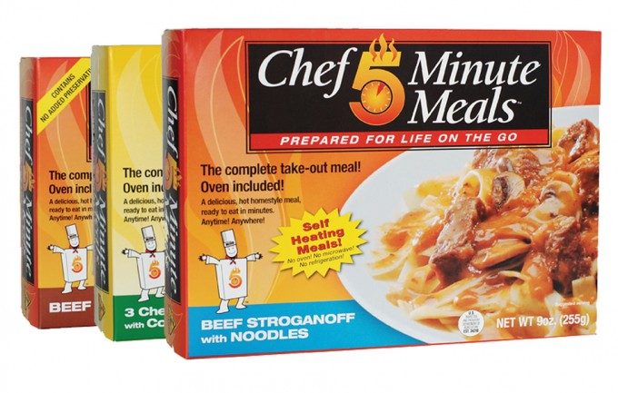 Puede ser un buen recurso para las acampadas en la montaña, las salidas a la playa o para comer ocasionalmente en cualquier momento y lugar. No necesita refrigeración para su conservación y su caducidad es de cuatro años. Actualmente se ofrecen nueve tipos de comidas auto calentables, pasta con pollo y parmesano, lasaña vegetal, tortilla de queso y carne, pollo en salsa cacciatore, espaguetis con carne, noodles con carne, judías con chile y estofado de carne, cada paquete contiene unos 255 gramos de comida.