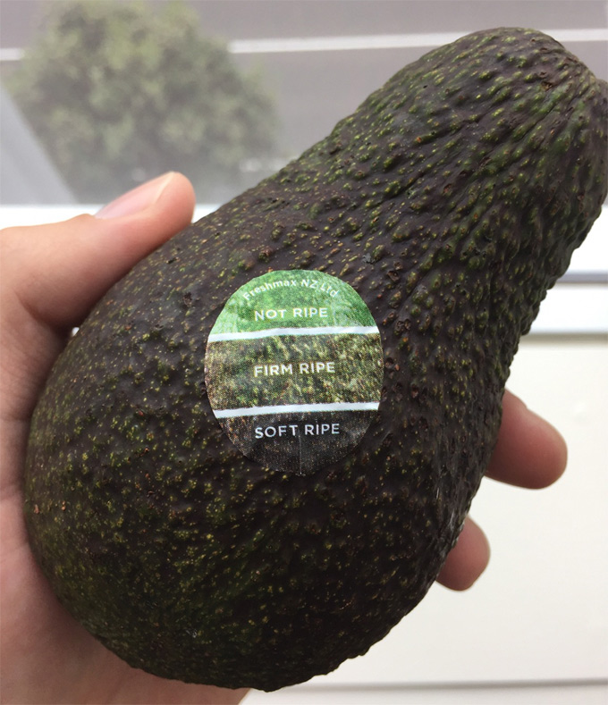 Con la etiqueta que podemos ver en el aguacate de la foto podríamos tener una orientación del punto de madurez de la pieza sin necesidad de tocarla, pero ¿quién se arriesga hoy en día a comprar un aguacate sin palparlo previamente? Hablamos de cuando se compra en las fruterías en las que te sirves tú mismo, por las que pasan todo tipo de personas y no tienen miramientos ni respeto por la comida, ni por las personas.