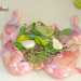 Salpimenta el pollo por los dos lados, pela los dientes de ajo, lava la lima y córtala en rodajas o en cuartos, y lava y seca las hierbas aromáticas frescas.