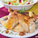 Tras cinco minutos de reposo, sirve el pollo asado en una fuente o bandeja en el centro de la mesa para trincharlo después, o córtalo en la cocina y sirve cada ración en su plato. Puedes acompañar de unas patatas de guarnición, una ensalada… lo vas a gozar. ¡Buena cocina y buen provecho!