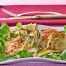 Podríamos decir que es una ensalada templada, porque la verdura va cruda y fría, y el pollo se sirve recién hecho. También podemos presentarlo como un plato principal, pollo a la plancha o a la parrilla con una rica guarnición de calabacín. En cualquier caso, este puede ser un perfecto plato único adaptando las cantidades a las necesidades de cada persona, y os aseguramos que las necesidades de disfrutar comiendo quedarán satisfechas. Comprobadlo.