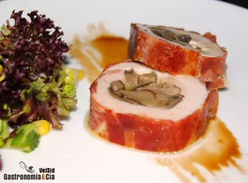 Se pueden hacer muchas variantes de este Pollo relleno de setas y queso ahumado, además, está la posibilidad de hacer rollitos individuales o uno grande como este, que después se corta en raciones más o menos gruesas, al gusto del cocinero y de quienes van a degustar el plato.