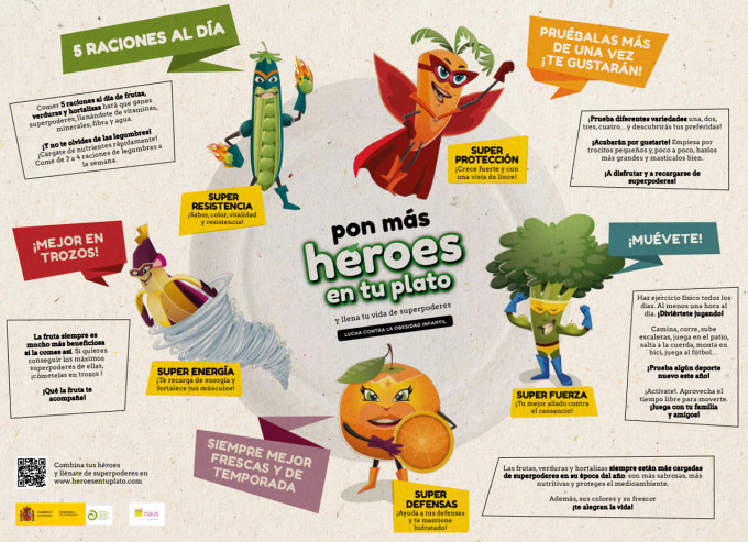 ‘Pon más héroes en tu plato, y llena tu vida de superpoderes’, la nueva campaña para promover una alimentación saludable y luchar contra la obesidad infantil, está dirigida a niños y a la población en general de forma secundaria, pretende ayudar a los padres y tutores a que los niños incrementen el consumo de frutas, verduras y legumbres, y a que realicen actividad física de forma habitual, y es que la obesidad infantil es un grave problema de salud y lo peor, es que muchos padres no son conscientes de ello.