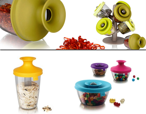 La línea de productos PopSome de Vacu Vin comprende distintos modelos de recipientes expendedores de alimentos, como podéis ver en la imagen superior, hay especieros, para frutos secos y caramelos, para cereales, azúcar… Ellos muestran sus propuestas, pero seguro que cada uno de nosotros encontraría una utilidad a estos accesorios de cocina y mesa.