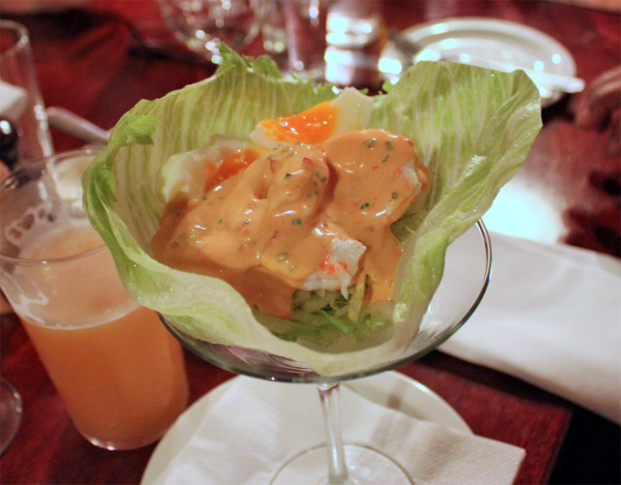 Parece ser que hay constancia en un artículo de prensa de 1889, publicado en San Francisco, en el que se menciona el Oyster Cocktail (cóctel de ostras) servido en una copa para beber, un combinado para comer acompañado de salsa de tomate, jugo de limón, chalota, rábano, chile o salsa Tabasco. También cuentan que el cóctel de gambas se consideraba una comida de lujo, elegante y moderna, entre los años 1920 y 1930.