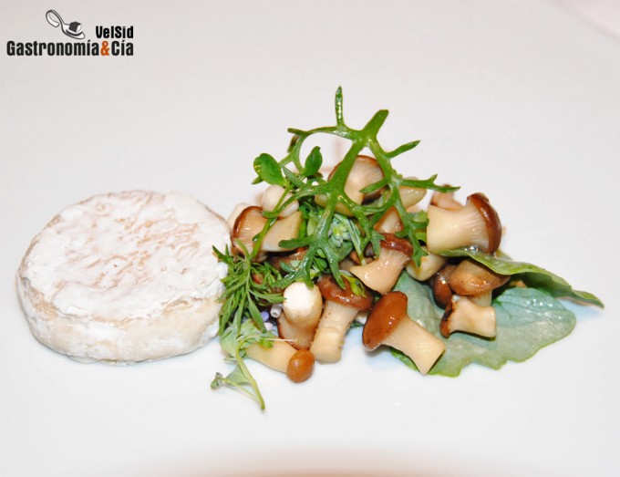 Sobre un plato disponer el queso de lino, a un lado colocar las setas y terminar colocando un poco de canónigos frescos.