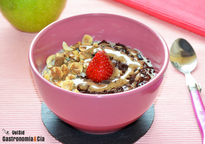 Chocolate y avellanas, avellanas y chocolate… una de nuestras combinaciones favoritas, y de millones de personas, lo sabemos. Pero para disfrutar de ella no hace falta recurrir a las típicas cremas de untar, y menos a las comerciales. Podemos saborear esta combinación en desayunos saludables, por ejemplo, haciendo un delicioso porridge con chocolate y avellanas. Es muy sencillo, y está para repetirlo día tras día, pero no olvidéis lo que comentábamos hace unos días, igual que variamos con las comidas, podemos variar con los desayunos, enriqueciendo el paladar y ampliando la variedad de nutrientes.