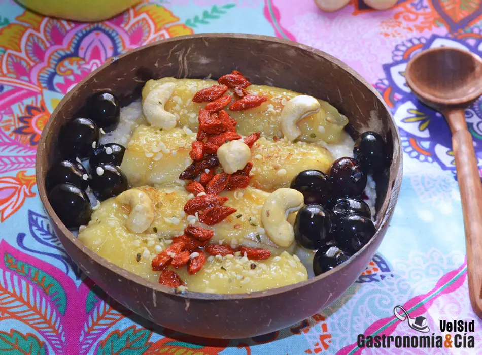 El porridge con plátano caramelizado está listo para disfrutar y nutrirse, ¡buen provecho!