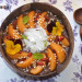 Coloca la fruta sobre las gachas de avena, puedes ponerla como en la foto, formando un círculo, y colocar el coco crujiente en el centro.