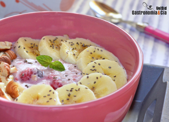 En otoño e invierno este se convierte en uno de nuestros desayunos favoritos, porque es cálido y reconfortante, y aún nos lo parece más cuando incluimos la fruta antes del cocinado, como hacemos también con la manzana, aunque luego nos encanta también añadir algo de fruta fresca. Esperamos que a vosotros también os guste y que toméis nota de esta receta de porridge de frambuesas con plátano y almendras, un desayuno saludable ideal para toda la familia.