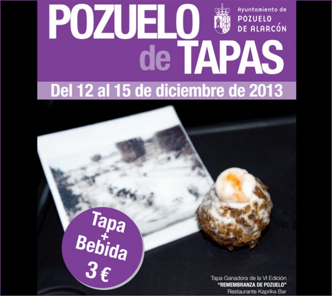 Del 12 al 15 de diciembre de 2013 los 36 establecimientos participantes en Pozuelo de Tapas ofrecerán sus ‘tapas exclusivas’ en horario de tarde/noche el jueves y viernes, y en horario de mañana y tarde/noche el sábado y el domingo. Hay que destacar una novedad que notarán los consumidores que hayan participado en las ediciones anteriores, y es que el precio de la tapa con bebida (vino, cerveza o refresco) ha subido, pasando 2’75 euros a 3 euros.