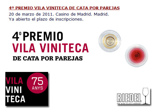 Este año se celebra la cuarta edición del Premio Vila Viniteca de Cata por Parejas, un concurso que tendrá lugar el próximo 20 de marzo de 2011 en Madrid, en el restaurante La Terraza del Casino, y que está destinado a mayores de edad de cualquier país, pudiendo ser aficionados o profesionales del mundo del vino.
