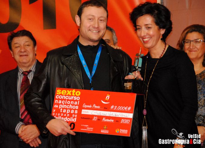 Pero este certamen ha deparado más alegrías al resto de participantes y premiados del Concurso Nacional de Pinchos y Tapas Ciudad de Valladolid, empezando por el cocinero reconocido con el segundo premio, Guillermo Rodríguez García, del restaurante de Almansa (Albacete) De Pintxos con su Esfera de txipirón con suave ali i oli, presentación impecable, minimalista e imaginamos (y pronto probaremos) que un pincho exquisito.