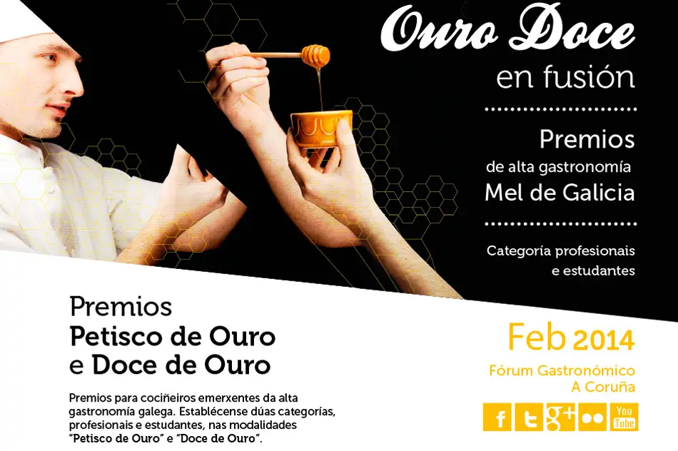 En el marco del Fórum Gastronómico Coruña 2014 va a tener lugar el certamen que premia a los chefs emergentes de la alta gastronomía de Galicia que celebra su segunda edición, son los II Premios ‘Ouro Doce en Fusión 14’. La organización, el Consejo Regulador de la Indicación Geográfica Protegida Miel de Galicia, en colaboración con el Fórum Gastronómico, tiene abierta la convocatoria hasta el próximo 31 de enero.